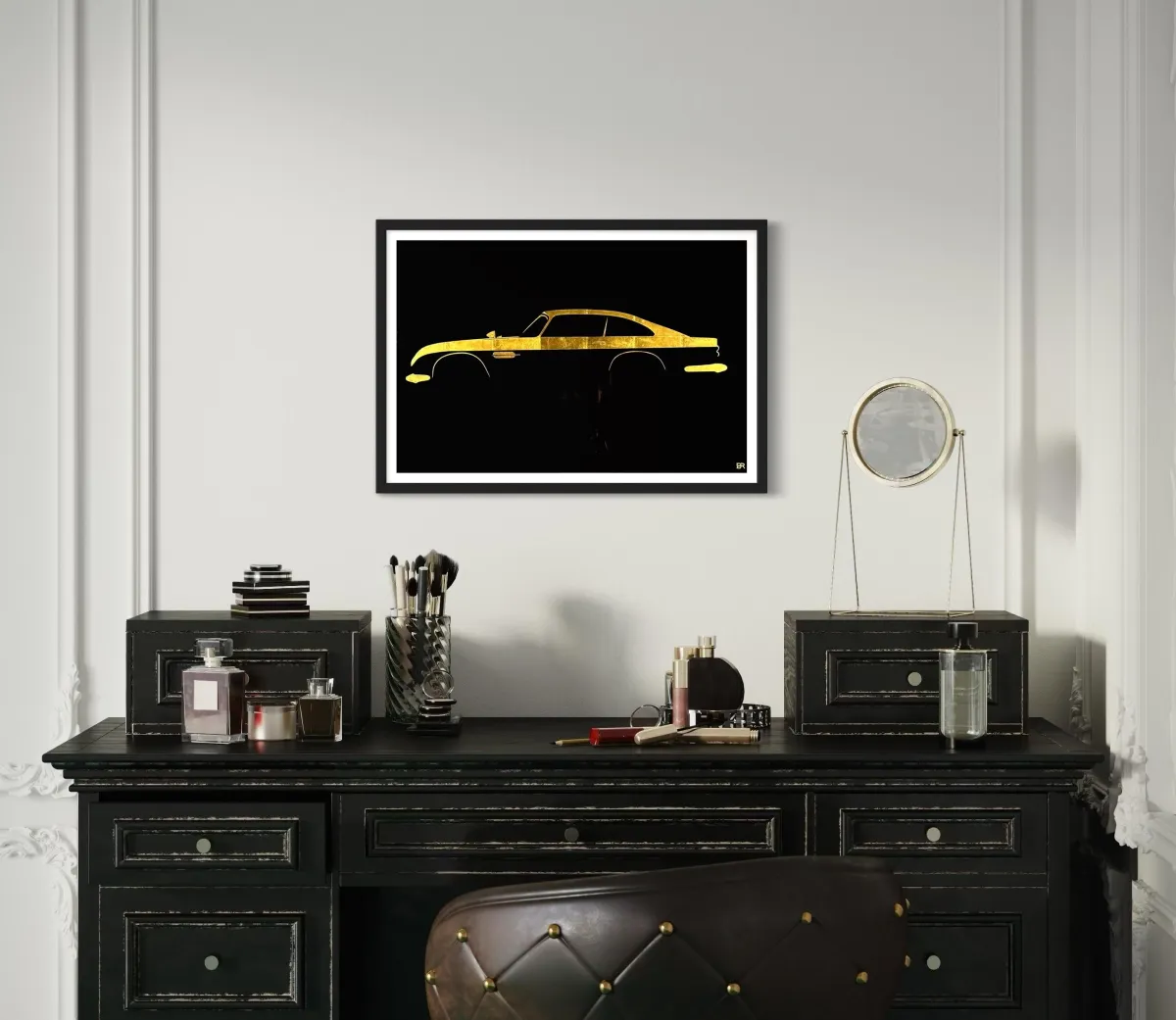Permanently captured in 23 ct Gold leaf we artistically replicate the unmistakable contour of your automotive pride and joy.